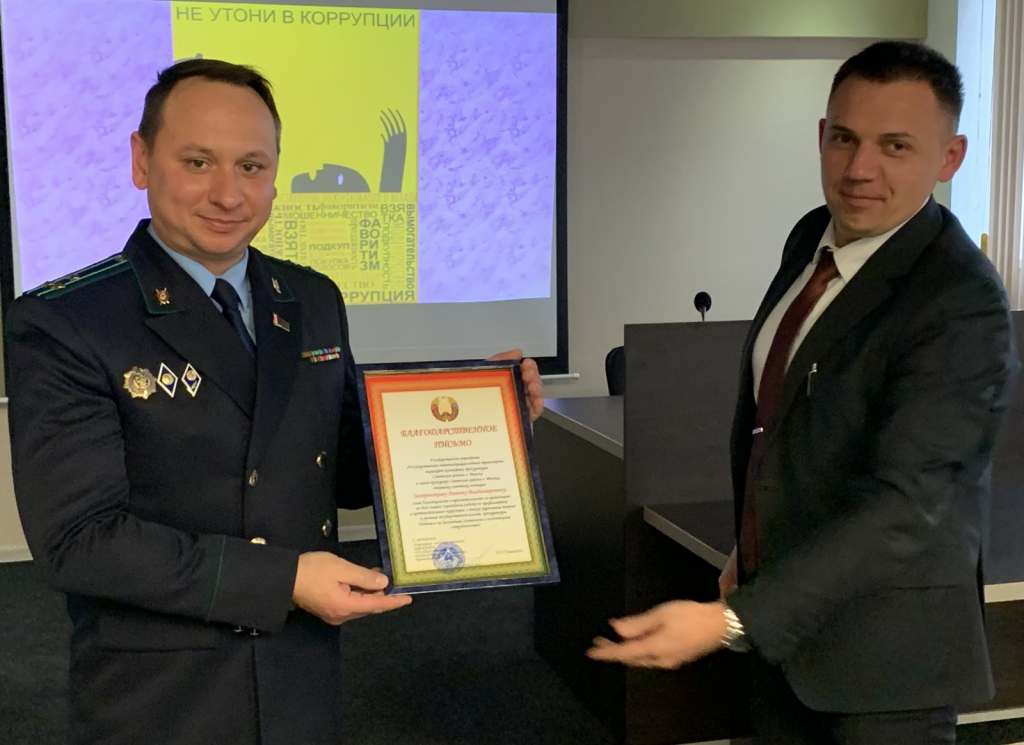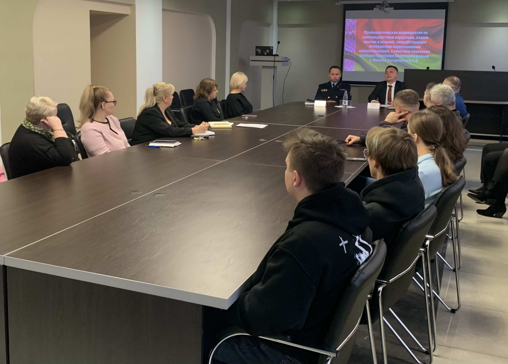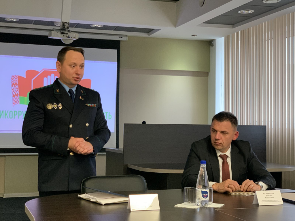 24 октября состоялось расширенное заседание трудового коллектива государственного учреждения «Государственная администрация водного транспорта» с участием Прокурора Советского района города Минска, старшего советника юстиции Загоровского Антона Владимировича, с целью проведения профилактических мероприятий по противодействию коррупции, формирования нетерпимого отношения к любым коррупционным проявлениям, укрепления доверия к органам государственной власти, органам прокуратуры и формирования позитивного отношения к проводимой в данном направлении работе, а также правового информирования работников учреждения по вопросам антикоррупционной тематики с анализом, по возможности, причин и условий, способствующих совершению таких правонарушений.