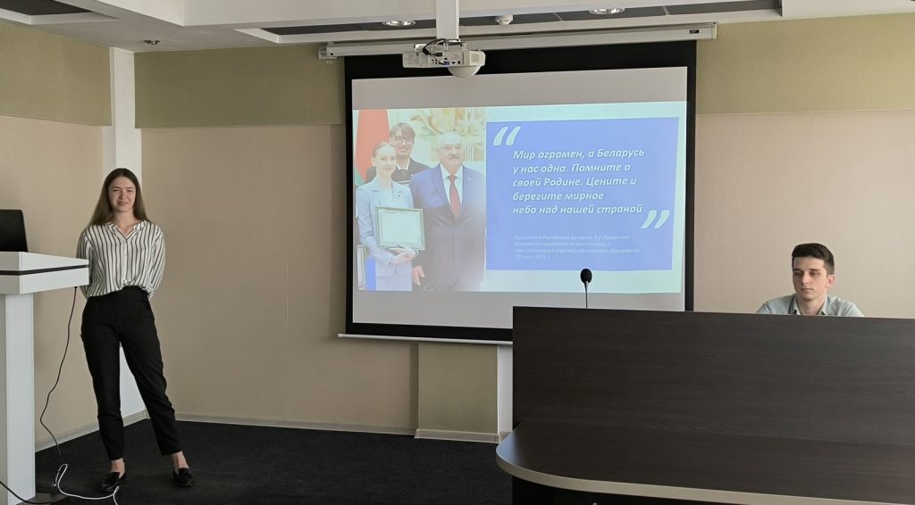 Ведущий специалист отдела Белявская Нина в своем докладе остановилась на исторических событиях, заложивших основу развития страны в послевоенный период, мерах и усилиях государства по ее сохранению и развитию в период суверенной Беларуси, рассказала о достижениях в сфере промышленности, сельского хозяйства, космической отрасли, энергетике, инновационных технологиях, социальной сфере.